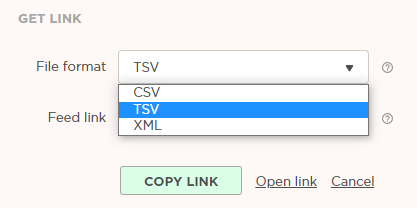 When exporting your feed, we recommend using CSV (Comma Delimited) or TSV (Tab Delimited) formats, as they tend to create fewer issues when submitting them to the e-commerce platforms such as Google Merchant or Facebook Catalog.